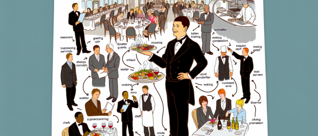 Vous devez posséder toutes les qualités précédemment citées pour être un bon serveur. De plus, l’hygiène corporelle et vestimentaire doit être parfaite, à laquelle il faut ajouter le calme pour gérer les heures de pointe quand le restaurant est bondé. En général, le serveur est chargé d’une zone composée de plusieurs tables dans le restaurant. Il devra prendre les commandes, servir les plats, récupérer l’addition et rendre la monnaie. Ses gestes doivent être précis et automatiques, la moindre erreur nuit à tout le personnel et à la réputation du restaurant. Seule l’habitude permet d’acquérir cette dextérité qui fait défaut aux débutants. La familiarité est interdite à moins que ce ne soit un client régulier qui vous connaît. La principale qualité d’un serveur est sa discrétion, il n’a qu’un objectif, satisfaire le client pour qu’il revienne à l’avenir. Selon les établissements, vous serez sous la responsabilité du chef d’équipe ou du propriétaire. Dans ce dernier cas, vous devrez parfois faire des tâches supplémentaires, telles que nettoyer la salle, écrire les menus et assurer la gérance. C’est toujours le cas dans les établissements modestes, et même s’il est contraignant, il permet de connaître tous les aspects du travail. Si l’établissement est de classe supérieure, vous devrez avoir une connaissance des vins pour les conseiller et les faire goûter au client. Il peut arriver également que vous soyez chargé d’une table individuelle, cela se produit si le client est un V.I.P et que le restaurant lui offre un service personnalisé. Mais c’est réservé aux meilleurs serveurs parce qu’ils devront posséder deux qualités contradictoires : satisfaire toutes les exigences du client et rester discrets pour ne pas le gêner. Par ailleurs, l’un des nombreux avantages du métier de serveur est la possibilité de voyager, car il connaît rarement la crise. De plus, on peut gravir rapidement les échelons pour avoir des responsabilités et des salaires plus importants. Ce dernier est l’une des principales raisons de son manque d’intérêt, en effet, le salaire dépasse rarement le SMIC, mais il peut augmenter grâce aux pourboires. Ces derniers vous feront un bonus à la fin du mois mais il ne faut pas trop les surestimer.